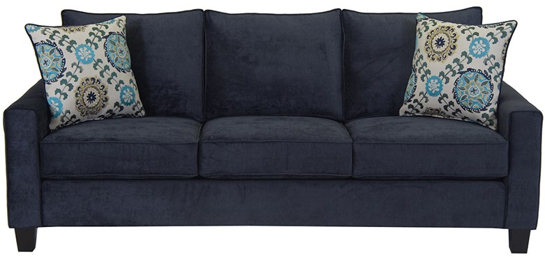 The Dynasty 1025 Dark Blue Sofa features track arms, block legs and sits 3 people comfortably.Read More