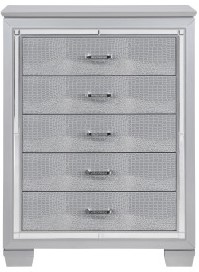 Glamour reigns in the design of the Allura Collection. Framing chest is a decorative beveled mirror accent. The alligator embossing of the drawer fronts is paired with high-polished crystal-enhanced hardware that boldly decorates the silver finish.Read More