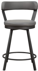 This 24-inch counter height chair offering features a dark gray metal base that serves to support the gray faux leather round swivel seat. Allowing for perfect placement within your space, the Appert Collection is offered in a 29-inch pub height and 4 additional colours – brown, black, red and white.Read More