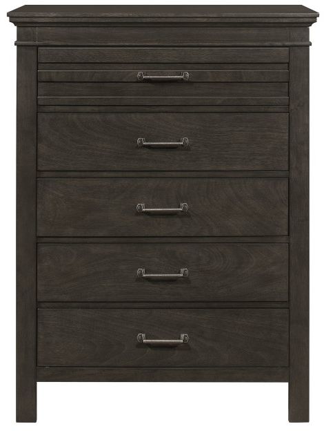 The transitional styling of the Blaire Farm Collection serves as the perfect complement to the rustic aesthetic that inspired the design. The okume veneer is enhanced by the espresso finish that covers the chest. Fixed handle pull hardware fronts the drawers while horizontal accent on the top drawer lends visual contrast.Read More