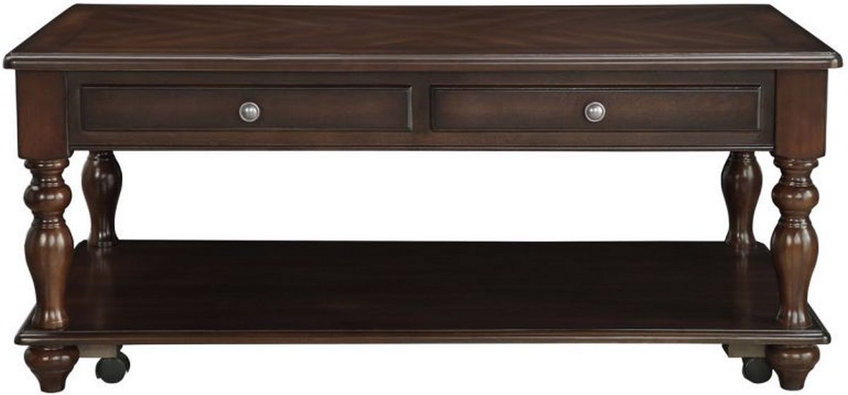 Turned legs provide support to the tabletops and display shelves of the Lovington Collection. Modern traditional styling is achieved with a blend of classic accents – turned legs, knob hardware, espresso finish, and creative functionality – caster-supported lift-top cocktail table, end table with drawer. Each of these elements combines to create a stylish look for your home’s living room.Read More