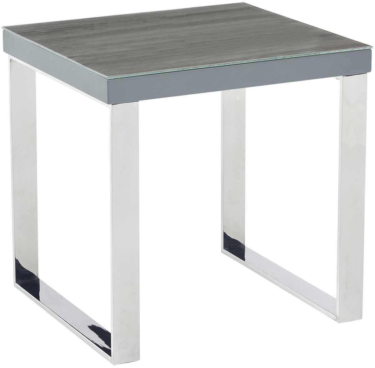 The eye-catching tabletop is crafted from durable engineered wood and crowned with a beautiful gray-toned faux wood laminate for a full-grain textured look, topped off with a 5mm glass coating to give the whole surface a luxurious lacquered appearance.Read More